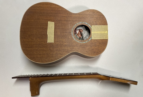 マホガニーコンサート研磨完了。この後ボディとネックの接着です。