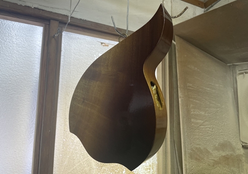 目止めで導管を埋めて余分な部分を落としてニトロセルロース クリアラッカーで塗装開始です。バック側の木目が奇麗です、色は実物に近いです。