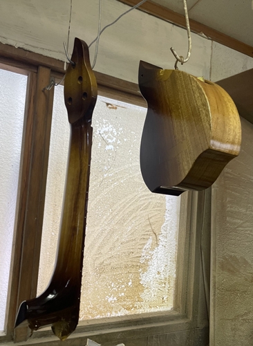 ボディのグラデ―ションがよく見えるように別撮りしました。ひたすらクリアラッカーを吹いています。