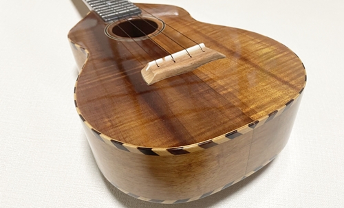 ワイゼンボーン スライドギターをモチーフにロープバインディングを施しましたのでワイゼン ロープと名付けました。ロープバインディングはオリジナルはボディ周囲をぐるっと同一方向に回っていますが、個人的に何か落ち着かない感じがしましてこのモデルはエンド部から左右対称に回っています。
