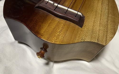 他の作業もたっぷりあります。冬場の乾燥でクラックのはいってしまったココボロギター、ハカランダコンサート、修復作業真っ最中。そして師走のウクレレ展で同時進行していた途中で止まったままのワイゼンロープはペグがメーカー品切れでようやく入荷しましたので作業再開です。