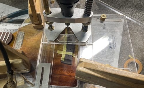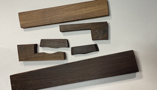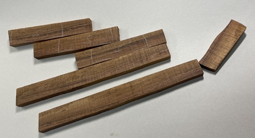 夢千鳥のブリッジ作り、ハカランダ材ですそして接着。