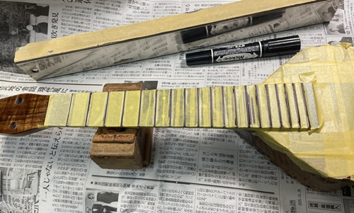 パイナップル用ネックはサイドドットを入れてヘッドを整形、全体の整形準備です。