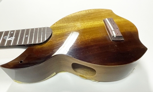 ナット、サドルを作っていよいよ弦を張りました。後は弦高調整とナット脇の塗装です。