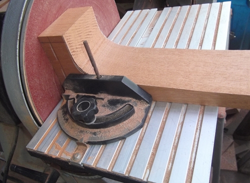 ディスクサンダーのペーパーがヘタって来ましてのの交換です。部品のテーブルとカヴァーを外さないといけません。交換したなら角度チェック。それで本番です。