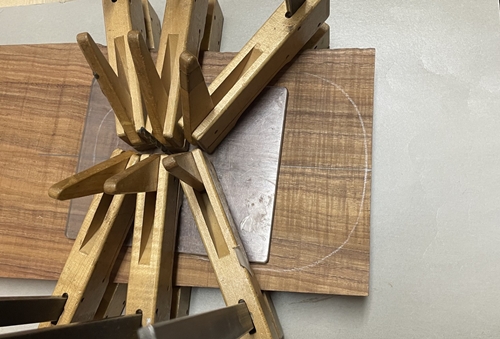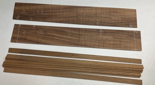 サイド材と、ライナーストリップざいの曲げ準備。トップ裏には補強材の接着です。