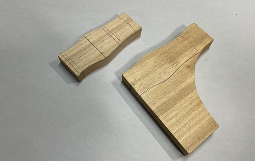 ワイゼン ネックはヘッドべニアを接着、整形用テンプレートがもう十年近く使っていなくて行方不明ですので新たに作りました。